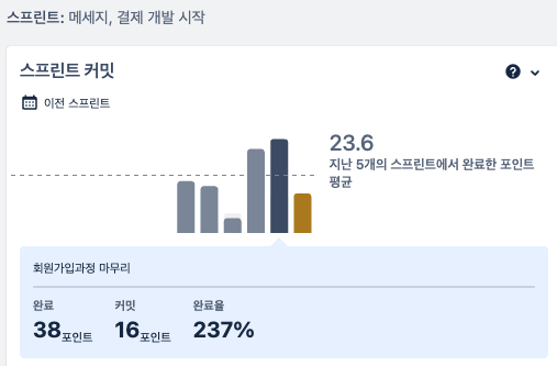 또한 작업을 에픽이라는 단위로 지정하고 관리하면서 진척도를 명확하게 표시하는 관리방식은 추산한 일정을 잘 수행하고 있는지 가시적으로 확인하기 좋은 지표로 다가왔다.