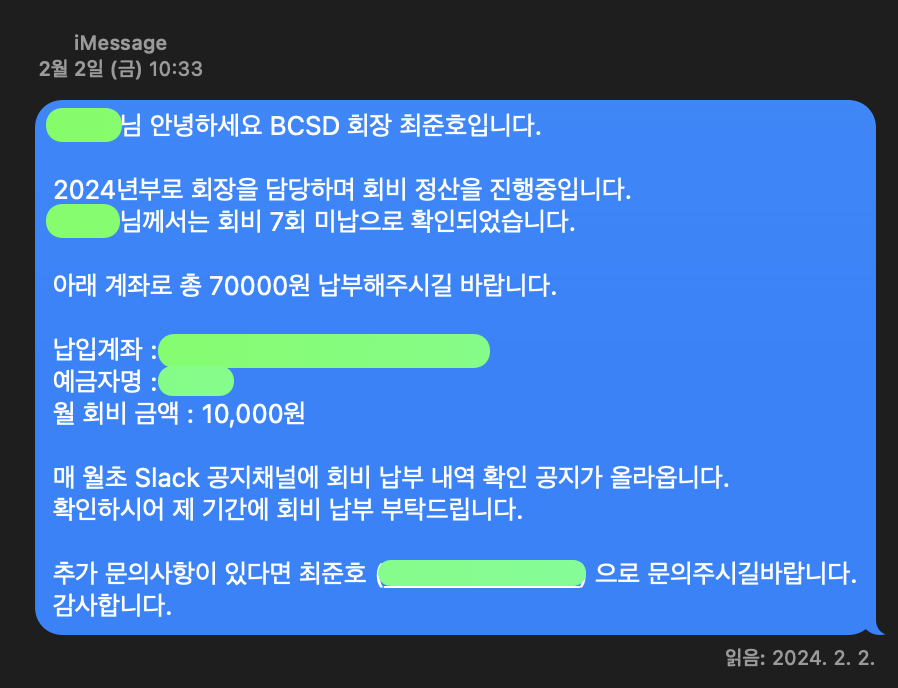 동아리는 코로나 시절부터 동아리를 운영하면서 회비 미납자에 대해 특별히 조치를 취하지 않았다. 성실히 회비를 납부하는 동아리원들의 반발심이 생길것이 우려되어 적절한 조치를 취해야겠다는 생각이 들었다.