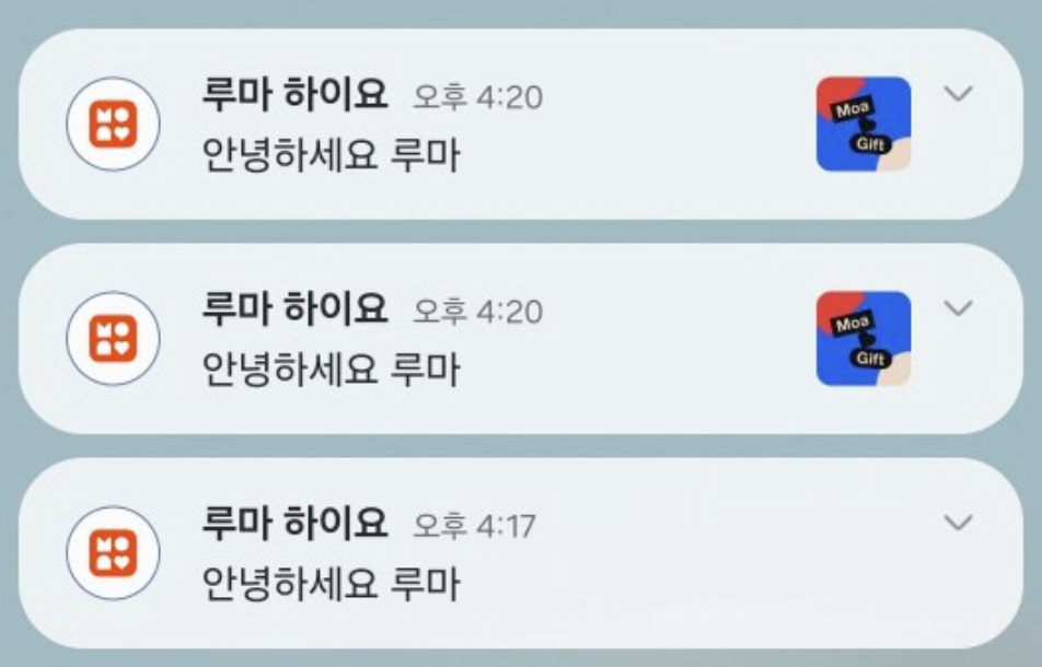 사전에 루마가 클라이언트 단을 미리 구현을 해뒀기 때문에 구현 및 테스트 과정에서 크게 어려움은 없었다. 어떤 상황에서 알림이 가야하는 지 정책을 세워주셨는데 알림발송에 대한 정책을 공유받는 것이 꽤나 좋은 경험이였다. 나중에 알림기능 구현이 필요할때 이런 문서화 방식을 잘 활용해봐야겠다.