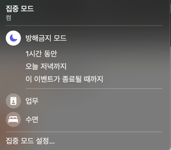 주말은 애플의 방해금지 모드를 애용하고있다 😅 슬랙, 카톡.. 미안하지만 주말에는 파업합니다 🎶