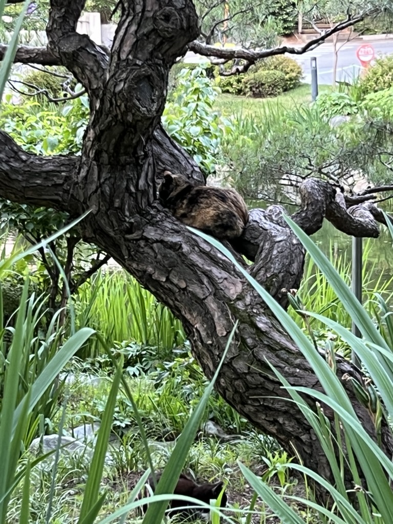 한예종(한국예술종합학교) 내부를 산택하다가 나무 위/아래로 고양이 발견! 🐈 🐈⬛
