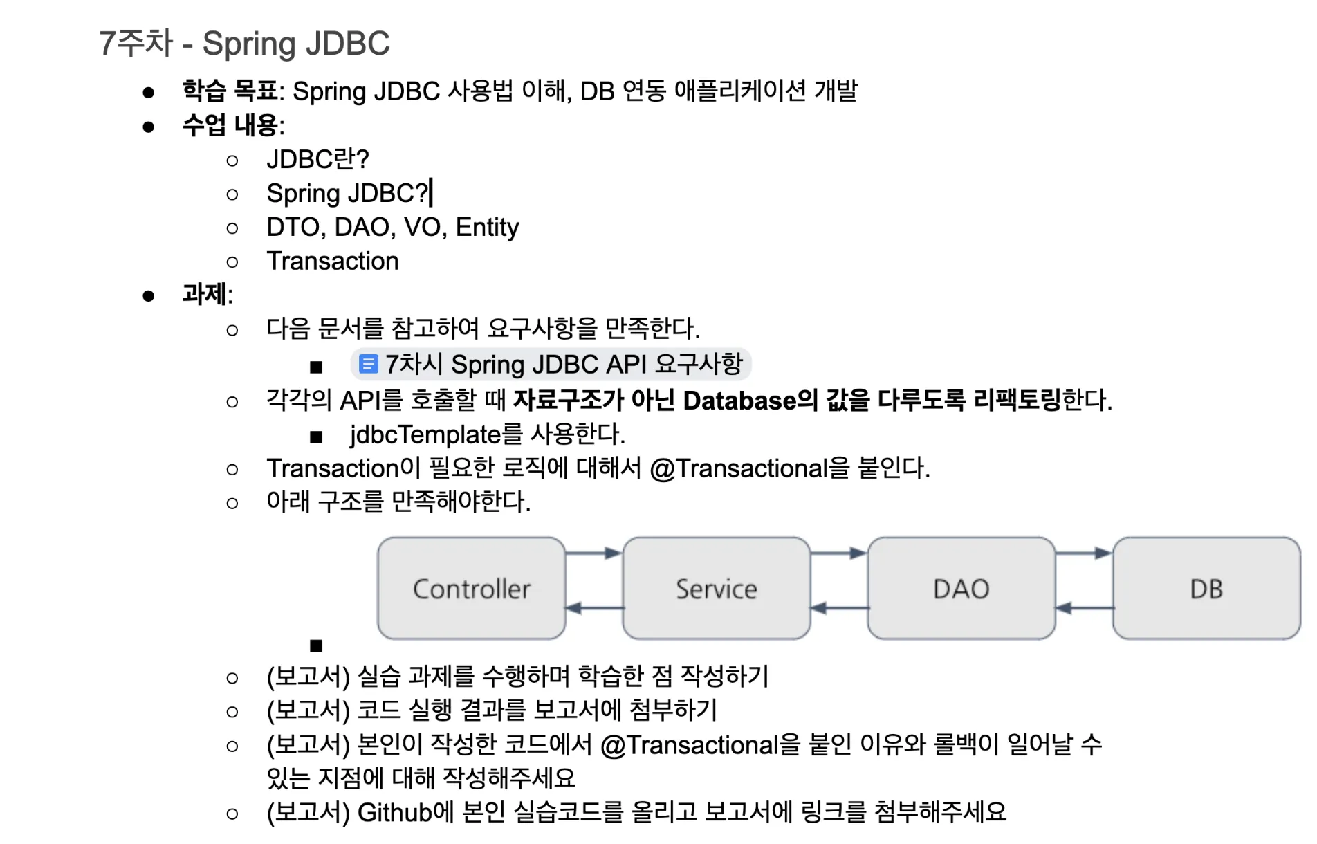 추가로 과제를 진행하며 교육생들이 혼동하는 개념들(DTO, VO, DAO, 계층형 아키텍처 등)에 대해 이야기하는 시간도 같이 가져갔다.