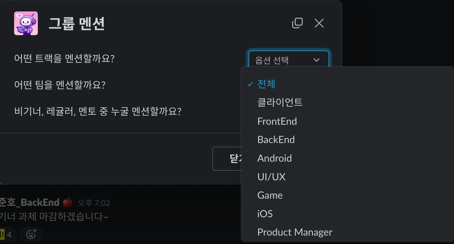 다음 스프린트 기획으로 글또에서 경험했던 데달부 슬랙봇이 인상깊어 아이디어를 차용해보기로 했다.