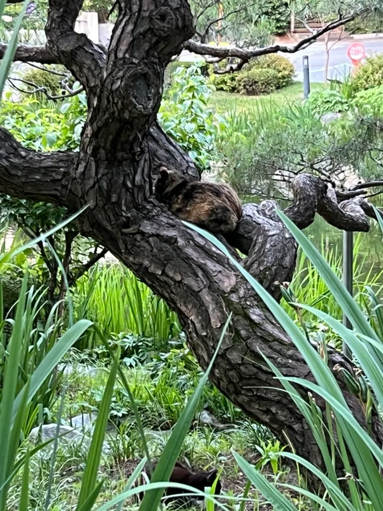 한예종(한국예술종합학교) 내부를 산택하다가 나무 위/아래로 고양이 발견! 🐈 🐈‍⬛