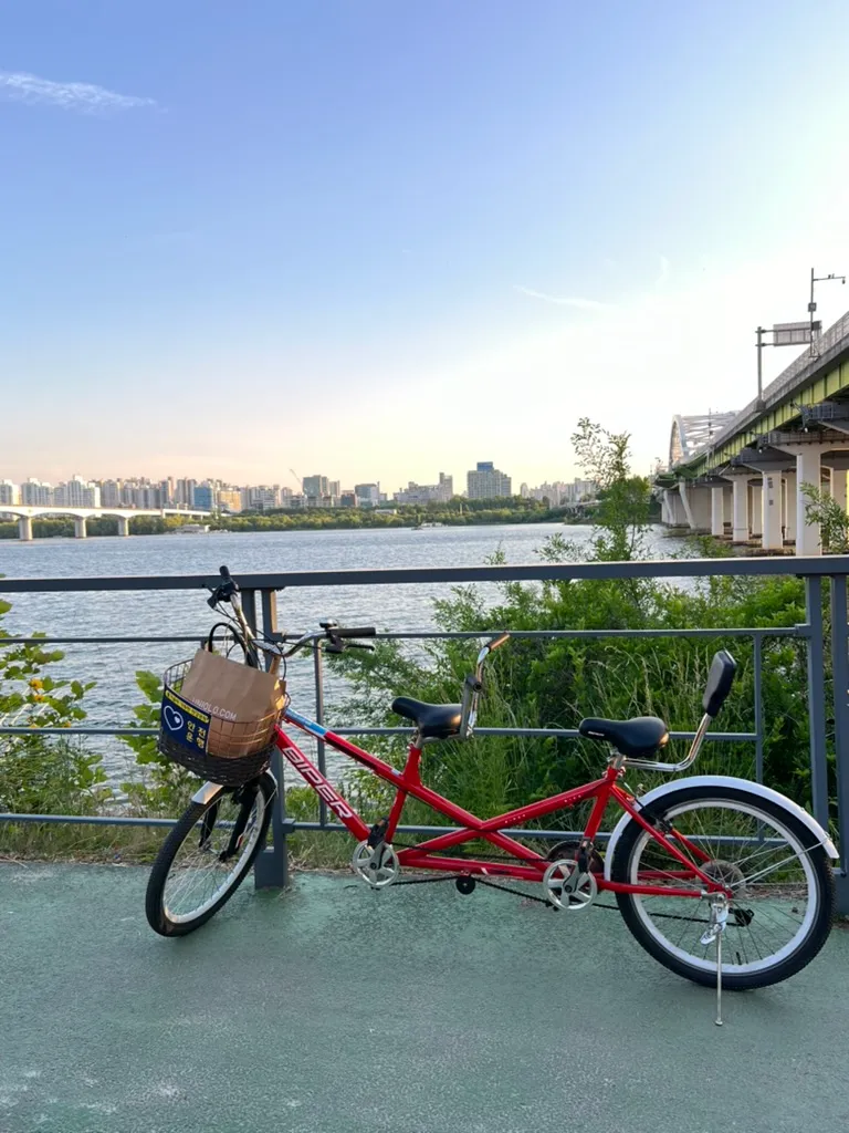 2인 자전거 타고 한강도 쌩~ 돌아봤다 마감 직전에 빌려서 반납시간 1시간 제한이 있었는데 최대한 멀리갔다올거야! 하면서 페달을 힘차게 밟았었다 ㅋㅋㅋㅋㅋ