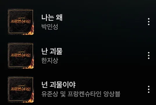 프랑켄슈타인 보기전에 유튜브 뮤직으로 넘버 와르르 주입하고 가기..