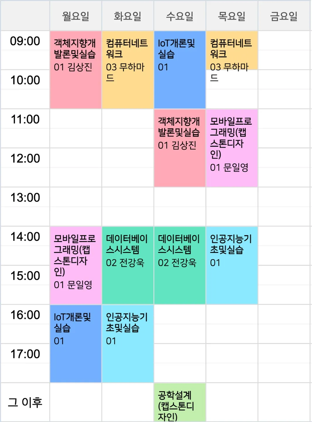💡 내년 상반기 시간표 스포 (졸작 6학점 + 모자란 전공선택 1학점)