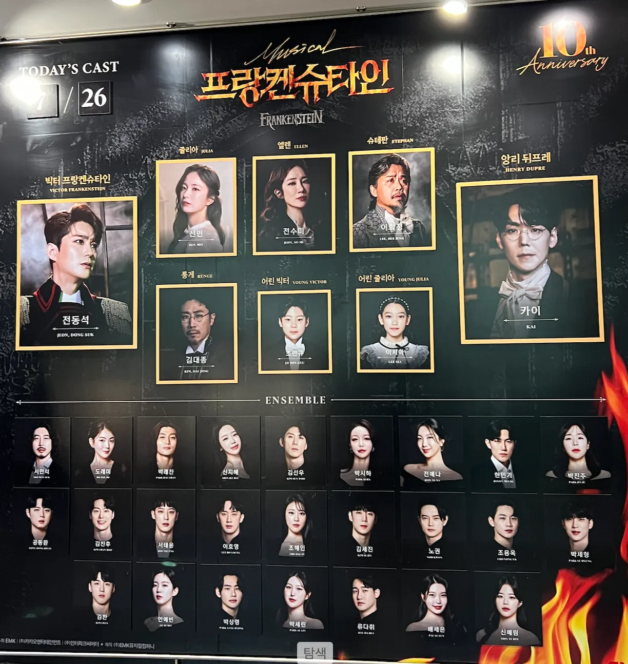 전동석 & 카이 페어로 봤는데 귀가 녹아내리는줄알았다. 전동석의 저음에 감동, 안경 컨트롤하는 카이에 감동, 화려한 무대구성에 감동, 앙상블 몸놀림에 감동… 감동의 연속이였다.