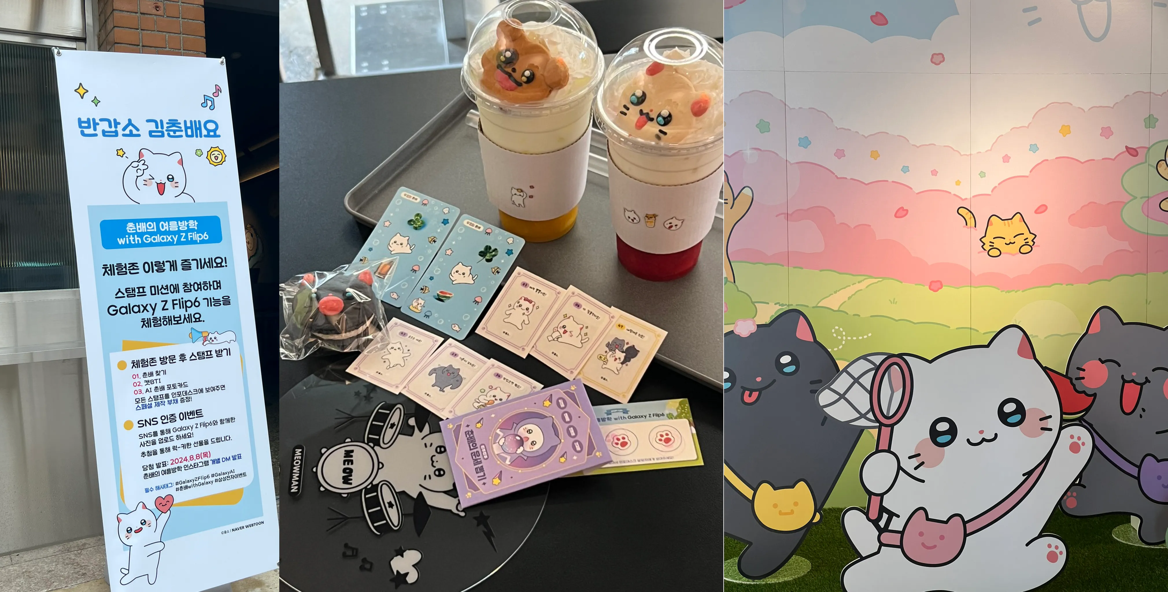 귀여운거 최고.. 진짜 미쳤다고생각한다. 🐱🐱 Z 플립 6에 AI 이미지 생성기 있는거 체험도 해보고, 춘배도 보고, 굿즈도 보고, 춘배도 보고… 행복했다 ✨
