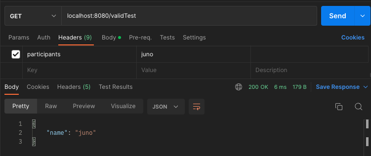 이 때 Header에 participants라는 값이 없거나 participants == juno 라면 예외가 발생하는 것이 정상적인 시나리오여야한다.