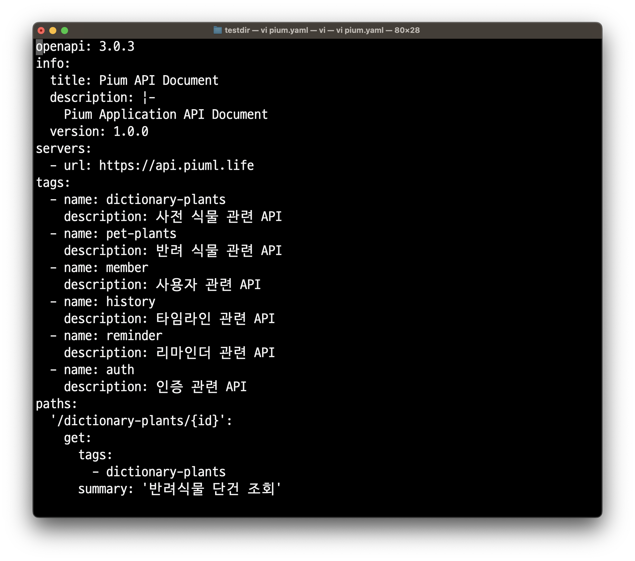 Open API 명세에 맞춰 yaml로 명세서를 작성해봤다.