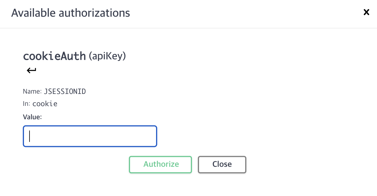 - cookieAuth: [ ] # 쿠키를 이용한 인증정보 (위에서 정의한 인증정보)