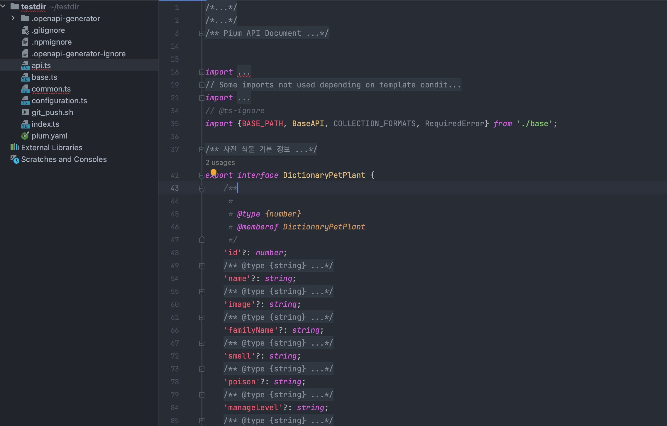 openapi-generator generate -i pium.yaml -g typescript-axios -o .