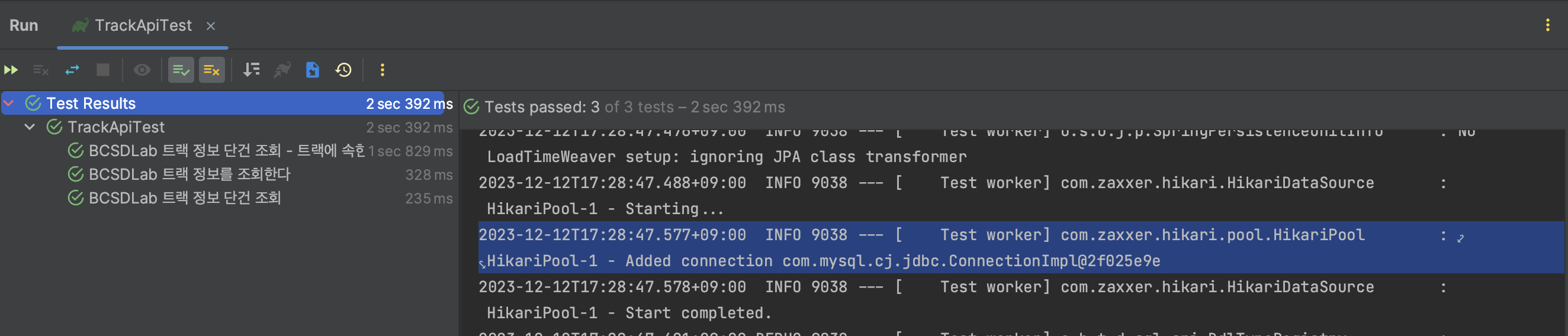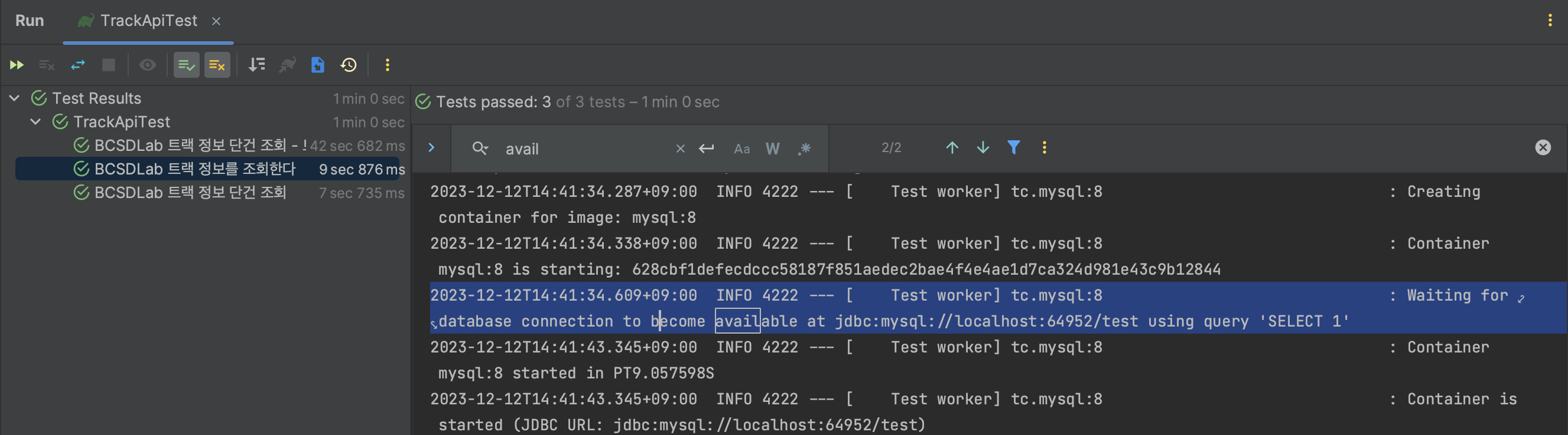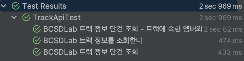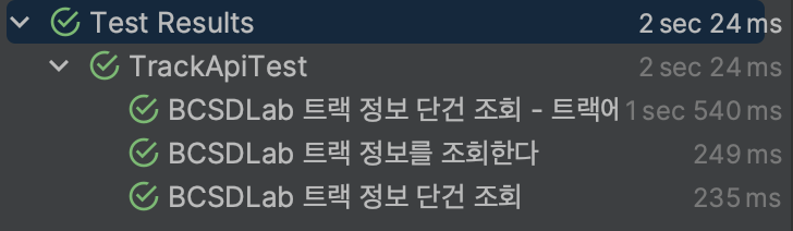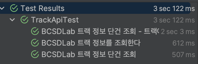 간단한 예시로 BCSDLab 트랙정보를 조회하는 인수테스트를 testContainer를 사용하도록 변경해보자.