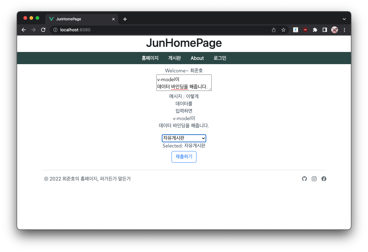vue에서는 v-model을 이용하여 데이터 바인딩을 도와준다.