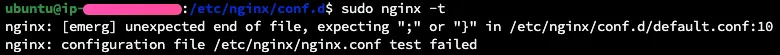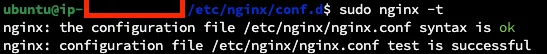 sudo nginx -t 명령어를 통해 nginx 설정이 정상적으로 구성되어있는지 확인할 수 있다.