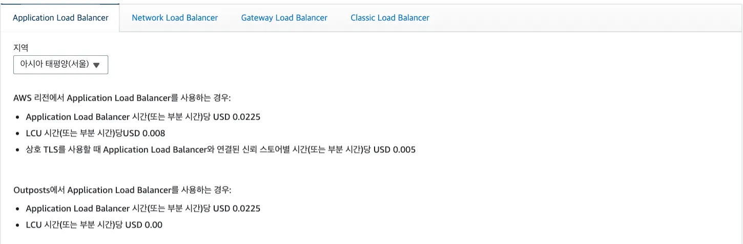 AWS - ELB 요금표