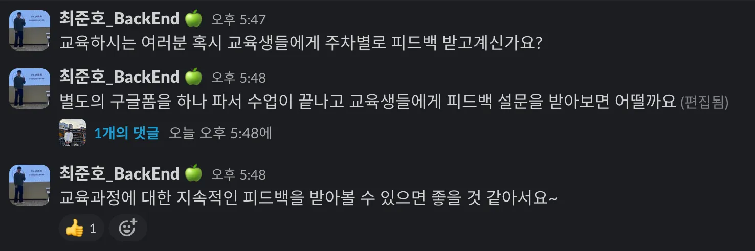 또한 현재 진행중인 교육과정에 대해서도 지속적인 피드백을 받아야할 것 같다.