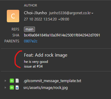 위 내용에 익숙해지기 어려울수도, 조직별로 명명규약이 달라 헷갈릴 수도 있다. 그럴 때 마다 규칙을 확인하는 것도 좋겠지만 commit message 템플릿을 별도로 지정해서 commit 시 가이드를 띄워주는 방법도 존재한다.