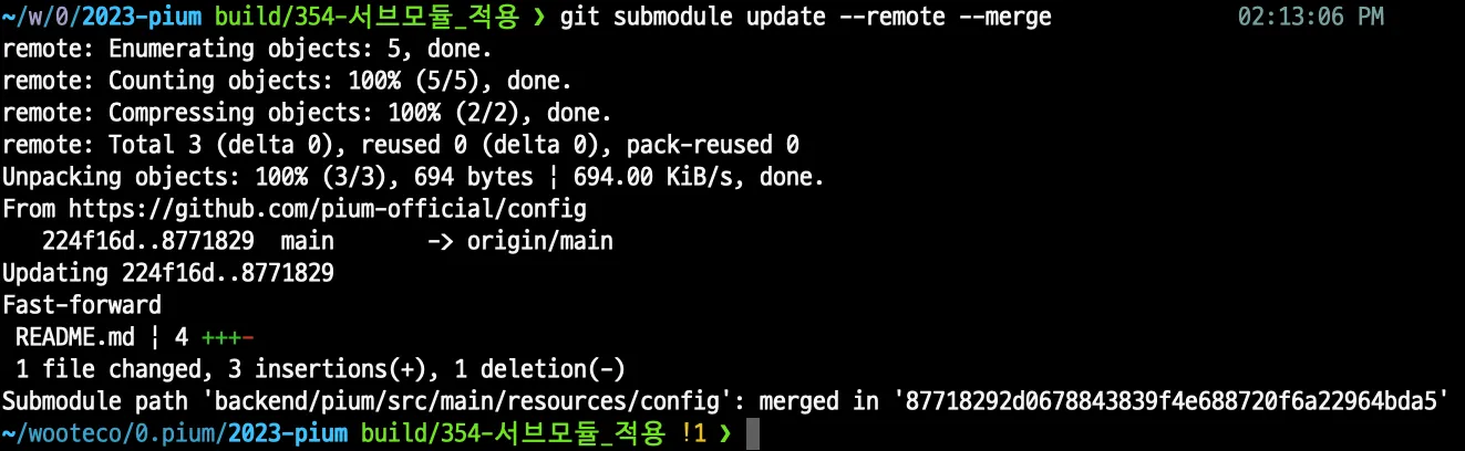 submodule이 update된 정보에 대해 기존 프로젝트에도 반영을 해줘야한다.