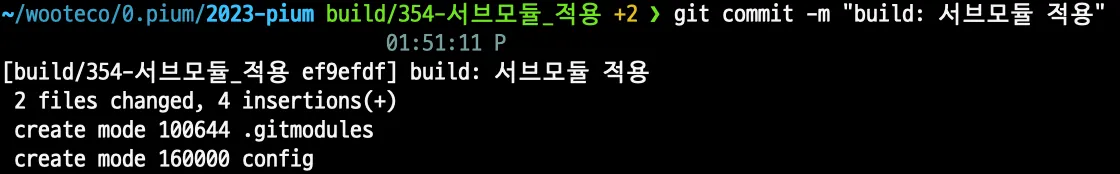 .gitsubmodule 파일과 config 폴더가 생성되고 git stage에 올라가있는 상태가 되어있을것이다.