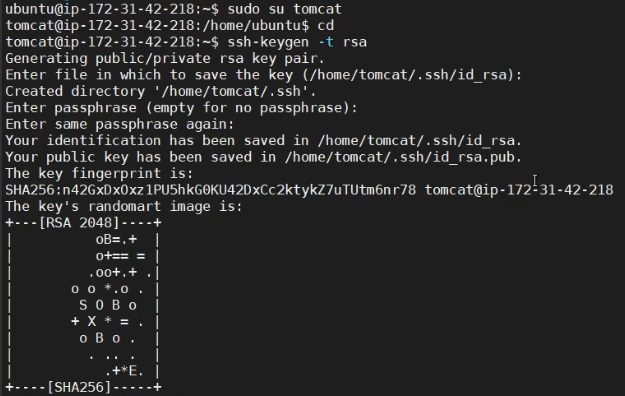tomcat 유저의 ssh 디렉토리에 authorized_keys 파일을 생성해준다.