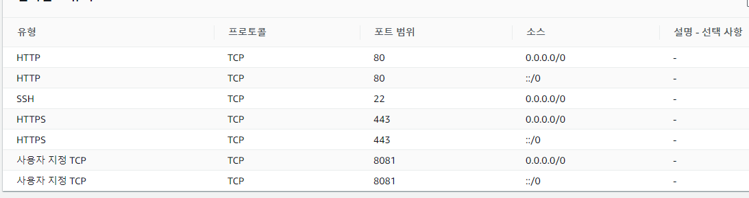 Build Server로 사용할 EC2를 생성해준다. 보안그룹은 아래를 참고