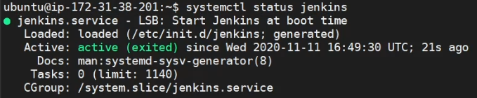 jenkins를 설치하고나서 실행중임을 확인한다.