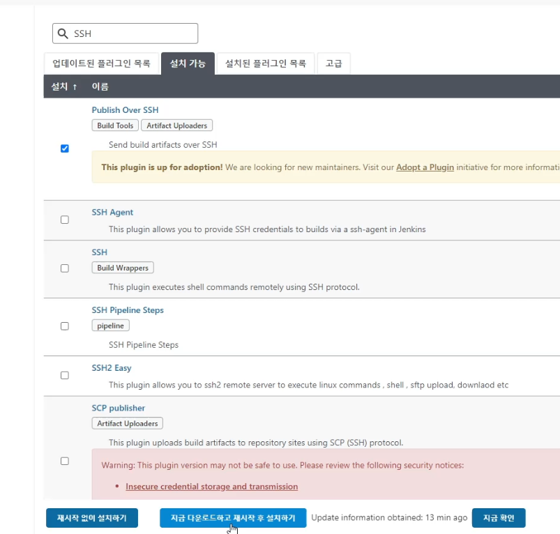 SSH를 통해 빌드 산출물을 전송하기 위해 사용하는 플러그인