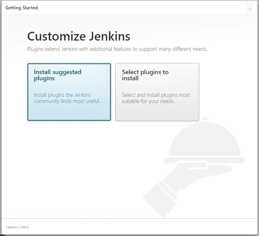 암호를 입력하면 아래 창이 뜨는데 Install suggested plugins로 기본적인 플러그인들을 받는다.