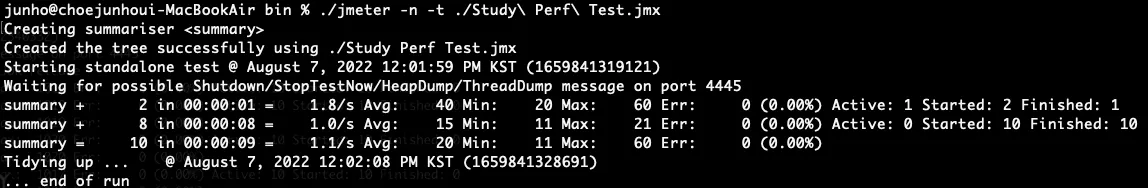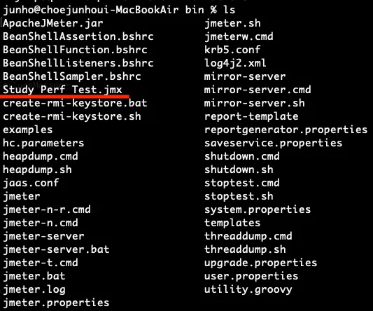 위에서 만든 파일을 대상으로 JMeter에 옵션을 주고 CLI로 실행할 수 있다.