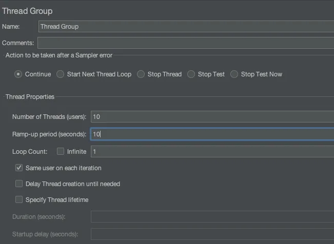 Thread Group에서 다음과 같은 설정이 있다.