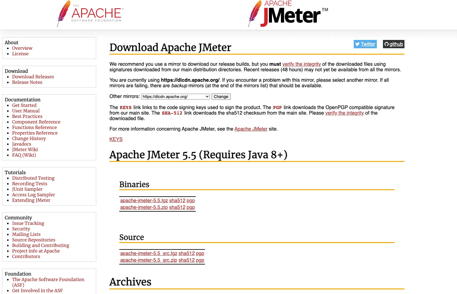 JMeter를 다운로드받는다. 홈페이지에서 다운로드 받을 수 있다.