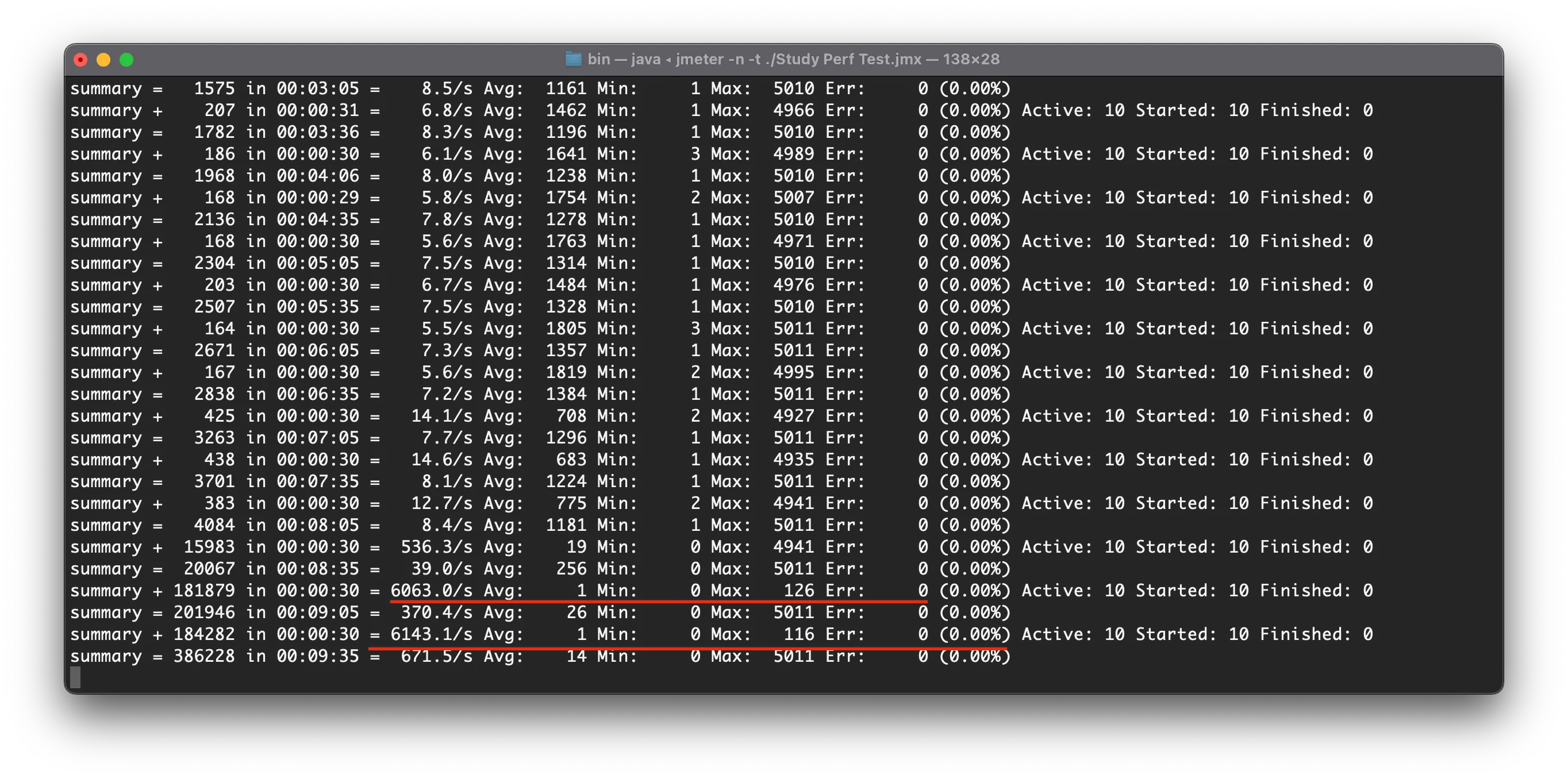 MAX값 즉 최대 응답시간이 5초가 된것을 통해 지연응답이 적용되었음을 확인할 수 있다.