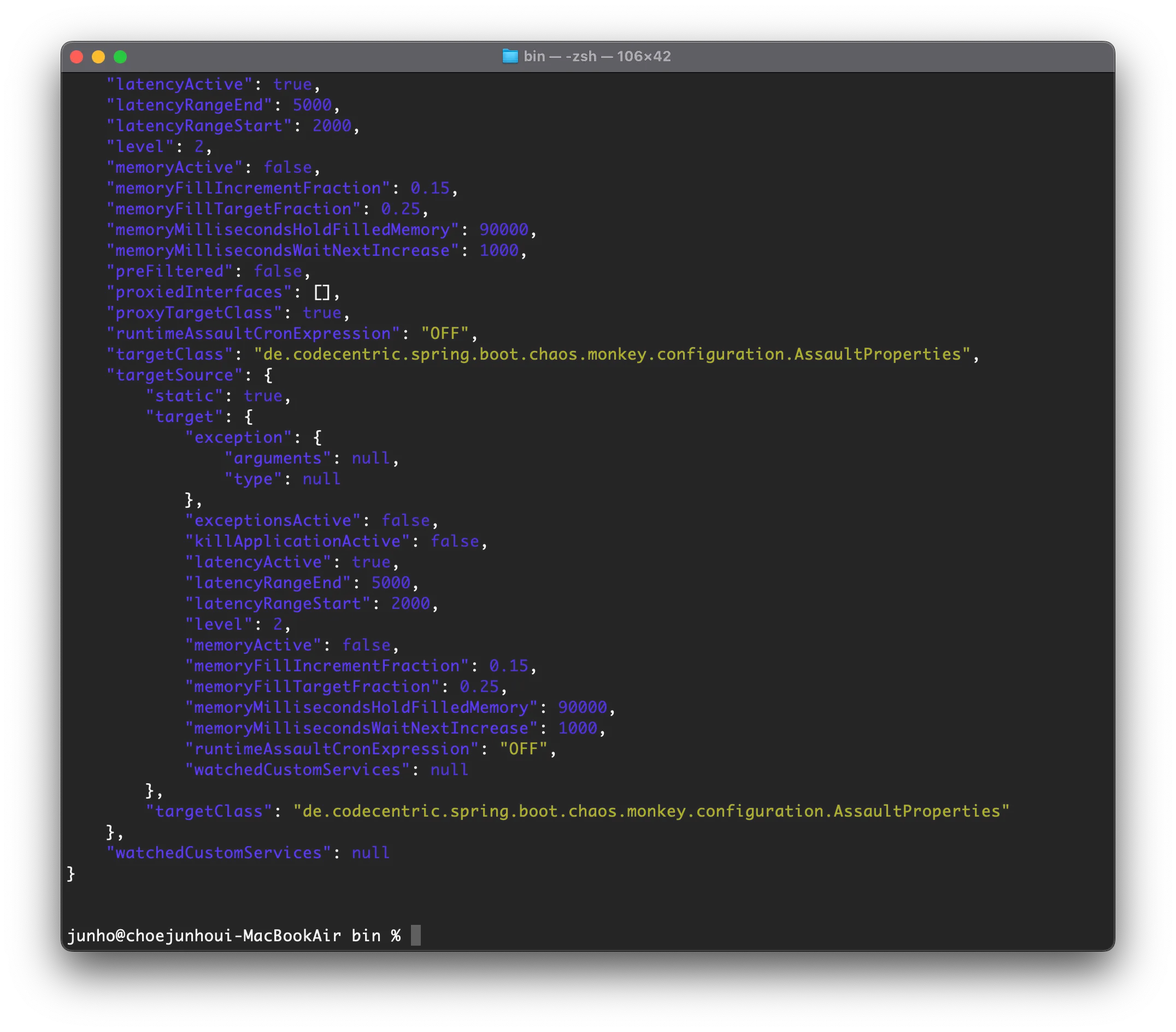 - 공격 활성화 확인 : http localhost:8080/actuator/chaosmonkey/assaults