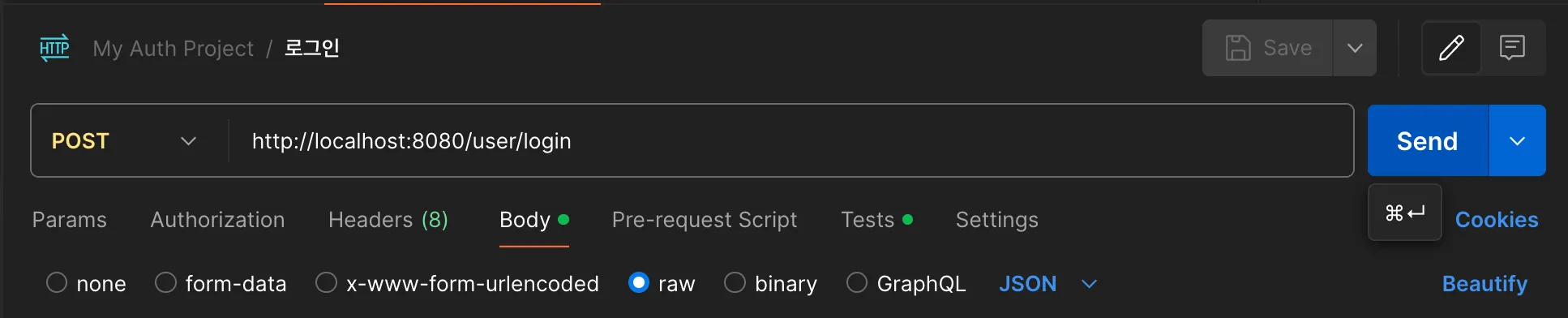 이제 인증이 필요한 Request 요청을 생성하고 여기에 인증값을 넣어주자.