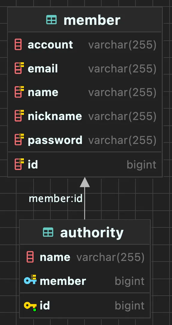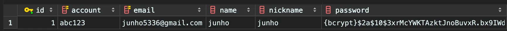 회원정보와 권한이 잘 저장된 것을 볼수있다.