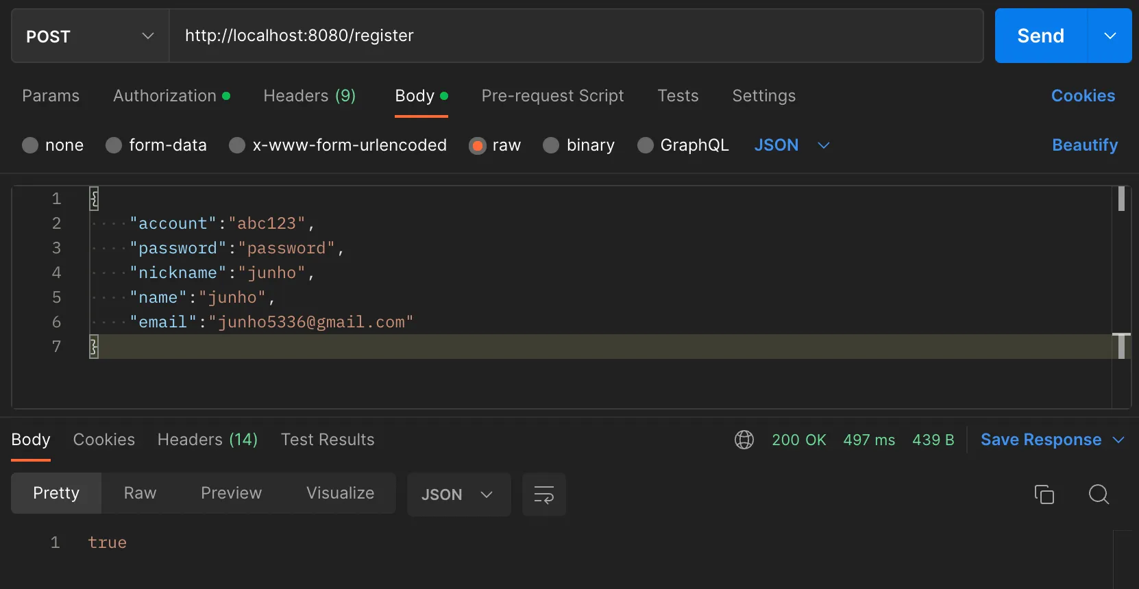 SignRequest DTO 정보에 맞게 회원가입 요청을 한다.